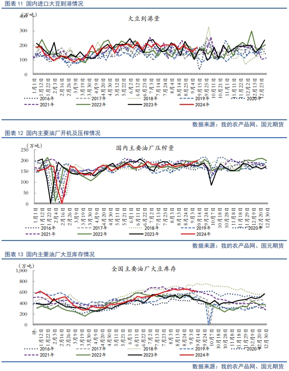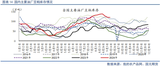 3.1國內(nèi)豆粕供應(yīng)——大豆到港高峰已過,豆粕庫存居同期高位