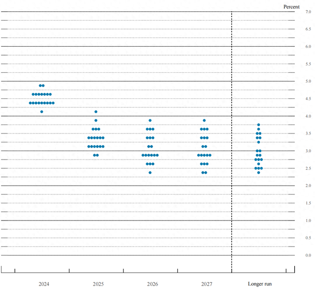 聯(lián)邦公開市場委員會參與者對適當(dāng)貨幣政策的評估:聯(lián)邦基金利率目標(biāo)區(qū)間或目標(biāo)水平的中點(diǎn)