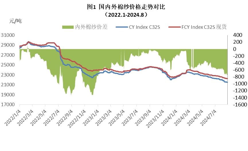 8月內(nèi)外棉紗價(jià)格均下跌,國(guó)產(chǎn)32支純棉紗月均價(jià)為21719元/噸,環(huán)比下跌了439元,跌幅2%,同比下跌了2607元,跌幅10.7%;進(jìn)口32支純棉紗8月均價(jià)22379元/噸,環(huán)比下跌了347元,跌幅1.5%,同比下跌了2051元,跌幅8.4%。