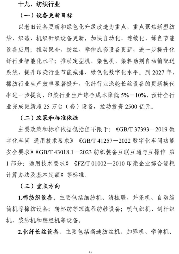 工信部紡織行業(yè)設(shè)備更新指南出臺(tái),預(yù)計(jì)拉動(dòng)2500億投資