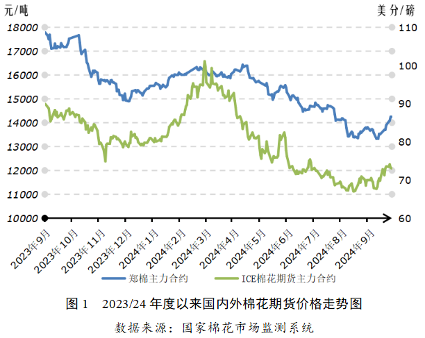 9月以來(lái),全球天氣擾動(dòng)增多,棉花供應(yīng)預(yù)期略有收緊,美聯(lián)儲(chǔ)、中國(guó)人民銀行降息等利好消息頻傳帶動(dòng)市場(chǎng)看漲情緒,國(guó)內(nèi)外棉價(jià)有所反彈。下一步行情走勢(shì)如何,本期月報(bào)將進(jìn)行探討。