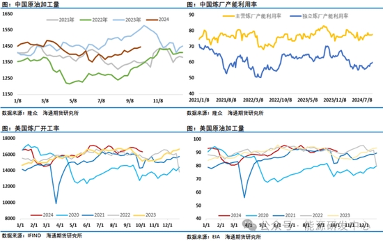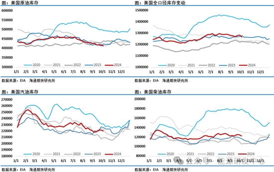 需求層面美國煉油進入季節(jié)性回落階段,成品油消費環(huán)比回升。中國市場同樣處于原油加工量季節(jié)性回升階段,不過與去年同期相比原油加工量還是下降明顯,目前需求端這一利空油價的表現(xiàn)還沒有出現(xiàn)好轉跡象。本周隨著中國推出超預期的積極政策有望給疲弱的國內(nèi)需求帶來變化,但這需要時間來逐步反饋。庫存數(shù)據(jù)方面最新的EIA周度報告顯示美國09月20日當周除卻戰(zhàn)略儲備的商業(yè)原油庫存減少447.1萬桶至4.13億桶,為2022年4月1日當周以來最低。庫欣庫存止跌小幅回升,汽柴油庫存也同步下降,低庫存仍然是支撐油價的因素。