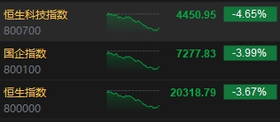 10月15日消息,今日港股三大指數(shù)低開低走,截至收盤,恒生指數(shù)(20318.791, -774.08, -3.67%)跌3.67%,報(bào)20318.79點(diǎn),恒生科技指數(shù)(4450.95, -217.23, -4.65%)跌4.65%,國企指數(shù)跌3.99%。盤面上,科網(wǎng)股普跌,美團(tuán)跌近7%,百度跌近6%,阿里巴巴、京東跌約5%;汽車股大幅下挫,新能源汽車方向領(lǐng)跌,蔚來跌超8%;啤酒股跌幅居前,華潤啤酒(29.45, -4.35, -12.87%)跌近13%;醫(yī)藥外包概念股集體走弱,康龍化成(14.28, -1.10, -7.15%)、泰格醫(yī)藥(35.05, -2.70, -7.15%)跌超7%;內(nèi)房股集體下跌,中梁控股(0.121, -0.03, -19.33%)跌超19%。