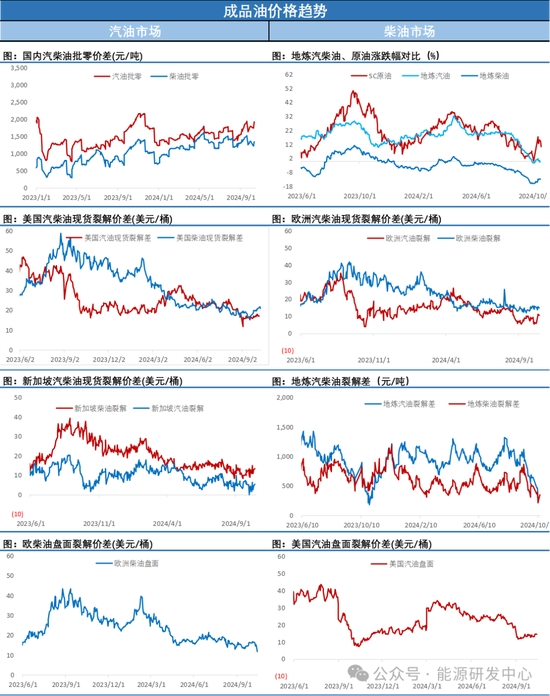 IEA周二下午公布了月報,同樣連續(xù)第三個月下調了全球原油(607, -8.60, -1.40%)需求,隨著各大權威機構陸續(xù)公布的月報均對需求端做出了下調,尤其是對于中國需求預期的下調成為了共識,這壓低了投資者對油價的預期,但從國內市場跟蹤的數據來看,油價對中國需求的回落計價仍不夠充分,該因素后續(xù)仍將是限制油價表現的利空因素。近期市場的分化點是成品油市場,歐美市場汽油裂解差走強,而柴油裂解差刷新了年內低點,而國內則是柴強汽弱的季節(jié)性強弱差異,國內與歐美成品油市場的表現出現明顯分化。投資者仍在評估地緣降溫之后原油市場的供需平衡演繹,預計油價將維持震蕩格局,注意節(jié)奏把握。