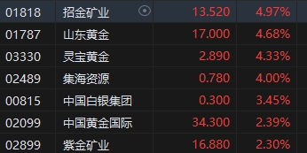 黃金股漲幅居前,招金礦業(yè)漲近5%。消息上,隔夜COMEX黃金期貨上漲0.52%,報2679.5美元/盎司。COMEX白銀期貨漲0.18%,報31.685美元/盎司。今早滬金主力合約盤中摸高609.60元/克,再創(chuàng)歷史新高。據(jù)一項對金銀行業(yè)的調(diào)查,金價明年料攀升至紀(jì)錄新高。在邁阿密參加倫敦金銀市場協(xié)會(LBMA)年會的代表預(yù)計,到明年10月底金價將升至平均每盎司2,917.40美元,較當(dāng)前水平上漲近10%。
