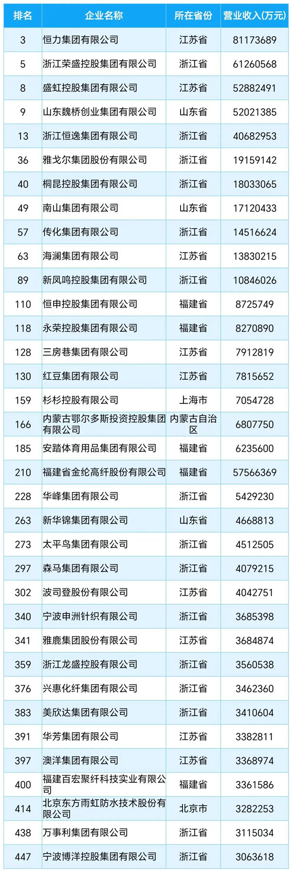 2024民營(yíng)企業(yè)500強(qiáng)紡織服裝企業(yè)上榜名單
