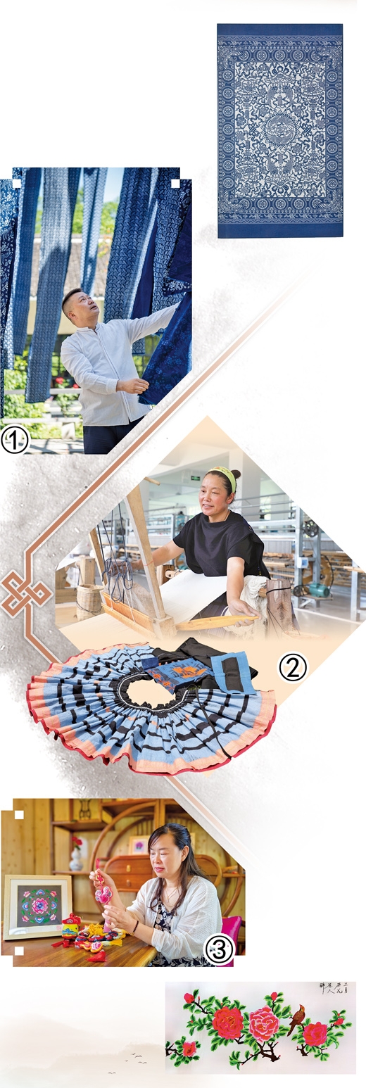 養(yǎng)缸刮漿,染出精美的藍印花布;浸染縫制,繡出獨特的民族服飾;輕挑慢捻,織出繡娘的美好生活……一件件植根于廣闊田野的紡織作品,與歷史回響、與時代交融,不僅承載著精湛技藝,更彰顯著文化傳承。