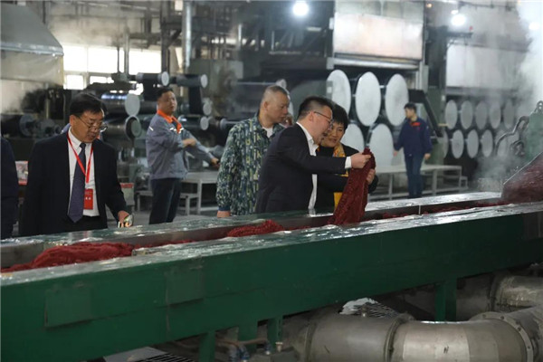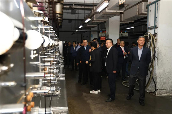 與會(huì)代表對(duì)滁州興邦聚合彩纖有限公司聚酯和纖維生產(chǎn)流程與環(huán)節(jié),以及滁州霞客無(wú)染彩色紡有限公司色紡紗線生產(chǎn)各工序進(jìn)行了參觀,與會(huì)代表們對(duì)在線添加原液著色生產(chǎn)有色纖維,進(jìn)而紡出有色紗線產(chǎn)生了濃厚的興趣。