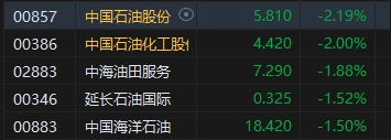國(guó)際油價(jià)下挫,石油股集體走弱,中石油、中石化跌約2%。消息面上,盡管近期中東局勢(shì)緊張,但以色列最新對(duì)伊朗的報(bào)復(fù)性打擊繞過(guò)了石油和核設(shè)施,導(dǎo)致國(guó)際原油市場(chǎng)的風(fēng)險(xiǎn)溢價(jià)迅速消散。且讓市場(chǎng)感到擔(dān)憂的是,短線油價(jià)下跌速率較大。本周僅兩個(gè)交易日,WTI及布倫特原油期貨主連均累跌超6%,交易層面的破位風(fēng)險(xiǎn)驟增