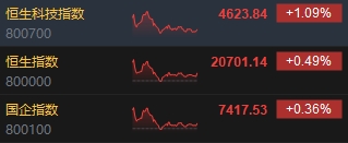 10月29日消息,今日港股三大指數(shù)盤(pán)中漲幅收窄,截至收盤(pán),恒生指數(shù)(20701.139, 101.78, 0.49%)漲0.49%,報(bào)20701.14點(diǎn),恒生科技指數(shù)(4623.84, 49.77, 1.09%)漲1.09%,國(guó)企指數(shù)漲0.36%。盤(pán)面上,科網(wǎng)股多數(shù)上漲,京東、百度、網(wǎng)易、美團(tuán)漲超2%;蘋(píng)果概念股漲幅居前,高偉電子(23.15, 1.80, 8.43%)漲超8%;回港中概股漲勢(shì)活躍,蔚來(lái)大漲近10%;昨日大漲的鋼鐵股回調(diào),重慶鋼鐵股份(1, -0.14, -12.28%)跌超12%;國(guó)際油價(jià)下挫,石油股集體走弱,中石油、中石化跌約2%。