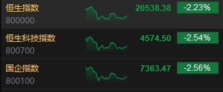 11月6日消息,今日港股三大指數(shù)低開低走,截至收盤,恒生指數(shù)(20538.381, -468.59, -2.23%)跌2.23%,報20538.38點,恒生科技指數(shù)(4574.5, -119.35, -2.54%)跌2.54%,國企指數(shù)跌2.56%。盤面上,科網(wǎng)股普跌,京東、阿里巴巴跌超4%,美團、小米、百度跌超2%;黃金股普遍低迷,招金礦業(yè)(12.62, -0.56, -4.25%)跌超4%;機器人概念股逆勢走強,上海電氣(4.14, 0.65, 18.63%)漲超18%;比特幣概念股集體沖高,雄岸科技(0.11, 0.03, 29.41%)漲超29%。