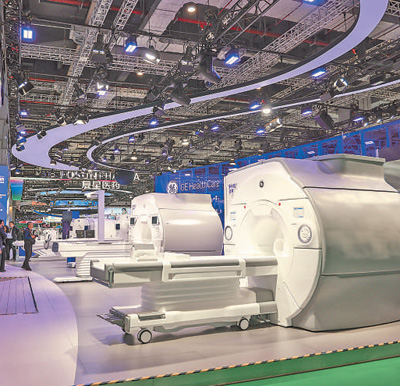 第七屆進(jìn)博會(huì)醫(yī)療器械及醫(yī)藥保健展區(qū)展出的凌云3.0T“讀秒成像”磁共振。