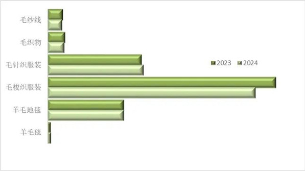 2023-2024年1~8月美國進(jìn)口毛紡產(chǎn)品品類情況(單位:美元)