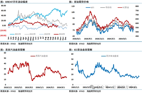 很多跡象表明特朗普將改變現(xiàn)任美國政府的諸多政策,從經(jīng)濟、地緣和能源市場自身進行一系列與當前拜登政府政策不同的重大調整,因此重新評估原油市場的變化也成為了當前階段的最重要工作,從目前市場反應來看市場對于特朗普當選之后,中長期利空油價的觀點基本無異議,但對于短期內的影響市場有一定的分歧,主要是對特朗普的系列經(jīng)濟政策可能引發(fā)美國通脹回升,以及可能加強對伊朗和委內瑞拉的制裁,讓伊朗等國石油供應減量等變化抵消了市場看空情緒。不過從特朗普的言論中我們判斷即便是對伊朗等重新加強制裁,影響伊朗石油的出口,也很可能不會對油價有明顯的提振,反而是為歐佩克+解決了一個大難題,伊朗產(chǎn)量的退出為歐佩克+已經(jīng)推遲了多次的增產(chǎn)提供了空間。在特朗普勝選第一時間沙特王儲就向其祝賀并愿意加強并表示有興趣加強華盛頓和利雅得之間的關系,這也為原油市場帶來了諸多可能?;诶孢x擇,其中一個選項就是歐佩克+增產(chǎn),配合特朗普限制油價。值得警惕的數(shù)據(jù)是周五油價回落轉弱的過程,高頻指標月差大跌刷年低點表現(xiàn)明顯弱于原油絕對價走勢,這對油價來說是個危險的轉弱信號。