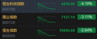 11月12日消息,今日港股三大指數(shù)低開(kāi)低走,截至收盤(pán),恒生指數(shù)(19825.279, -601.65, -2.94%)跌2.84%,報(bào)19846.88點(diǎn),恒生科技指數(shù)(4449.29, -202.42, -4.35%)跌4.19%,國(guó)企指數(shù)跌3.11%。盤(pán)面上,科網(wǎng)股普遍下跌,美團(tuán)、京東跌超5%,百度、阿里巴巴跌約4%;黃金股跌幅居前,中國(guó)黃金挫逾7%;中資券商股普遍下挫,申萬(wàn)宏源(2.72, -0.20, -6.85%)跌超7%;半導(dǎo)體概念股集體走弱,中芯國(guó)際(27.2, -2.30, -7.80%)跌近8%;醫(yī)藥股部分走強(qiáng),凱萊英(62.25, 1.95, 3.23%)、昭衍新藥(10.56, 0.28, 2.72%)漲超2%。
