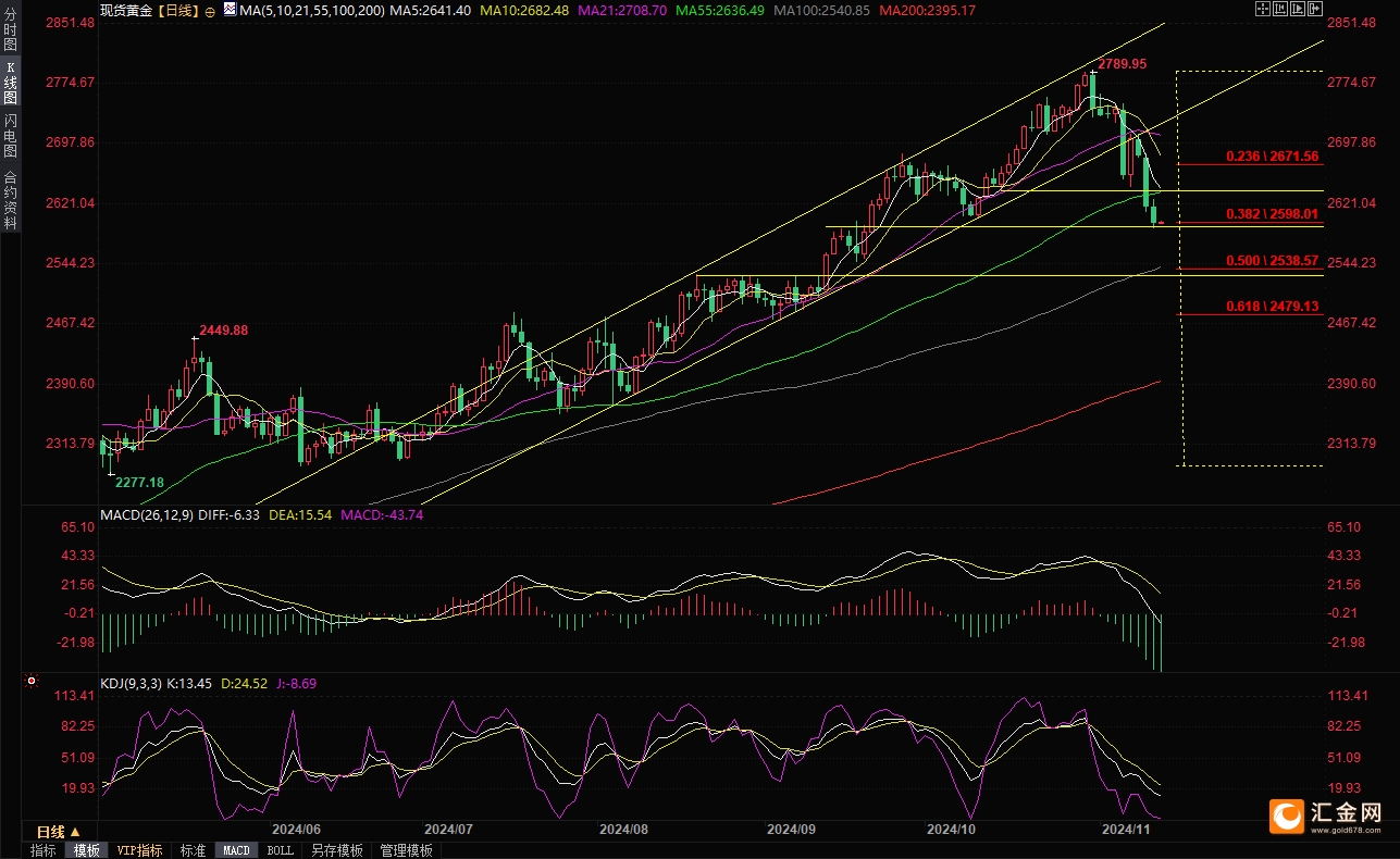 周三(11月13日)亞市早盤(pán),現(xiàn)貨黃金窄幅震蕩,目前交投于2598.56美元/盎司附近。金價(jià)周二跌至近兩個(gè)月低點(diǎn),盤(pán)中一度失守2600關(guān)口,至2589.61美元/盎司,收?qǐng)?bào)2598.05美元/盎司,為連續(xù)三個(gè)交易日下跌,受累于美元走強(qiáng)至逾半年高位,對(duì)特朗普第二次執(zhí)政后經(jīng)濟(jì)增長(zhǎng)的樂(lè)觀情緒以及11月5日美國(guó)總統(tǒng)大選后市場(chǎng)大范圍轉(zhuǎn)向。