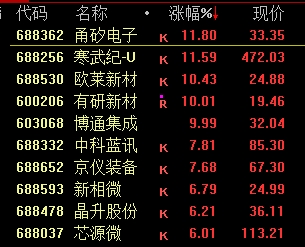 半導(dǎo)體概念局部異動,寒武紀(jì)股價一度漲超15%。