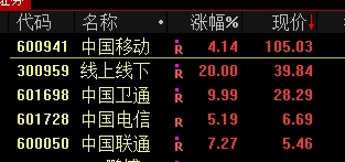 市場焦點重新回到高股息資產(chǎn)、中字頭等板塊,其中,三大運(yùn)營商漲勢顯著,中國聯(lián)通漲超7%,中國電信漲5%,中國移動漲近4%。對于高股息資產(chǎn),有觀點認(rèn)為,隨著外部不確定性增大,具有較強(qiáng)防御屬性的高股息資產(chǎn)有望再受青睞。