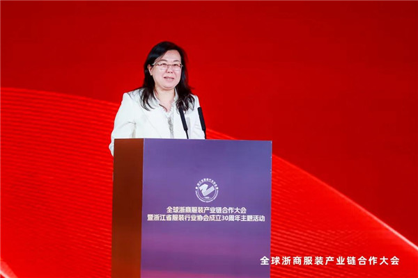 中國紡織工業(yè)聯(lián)合會會長孫瑞哲在致辭中表示,在進一步全面深化改革的起步之年,本次大會以全球視野共同探討浙江服裝產(chǎn)業(yè)的未來發(fā)展,他肯定了浙江省服裝行業(yè)協(xié)會三十年來卓有成效的貢獻,作為行業(yè)的關(guān)鍵平臺和中堅力量,浙江省服裝行業(yè)協(xié)會始終將產(chǎn)業(yè)發(fā)展放在全球核心產(chǎn)業(yè)的全局性思考,推動行業(yè)生產(chǎn)力,形成新生態(tài)經(jīng)濟效益,為行業(yè)繁榮注入新活力、新動力。孫瑞哲會長希望未來浙江服裝行業(yè)繼續(xù)因地制宜圍繞科技、時尚、綠色發(fā)展新增長,干在實處走在前列,勇立潮頭;做強做深地方經(jīng)濟,提升本土企業(yè)研發(fā)能力,加強產(chǎn)品理論創(chuàng)新;提升時尚環(huán)境,向世界講好中國故事,構(gòu)筑時尚話語權(quán);關(guān)注前沿技術(shù),以技術(shù)創(chuàng)新推動產(chǎn)業(yè)創(chuàng)新。
