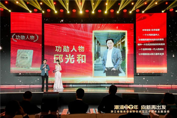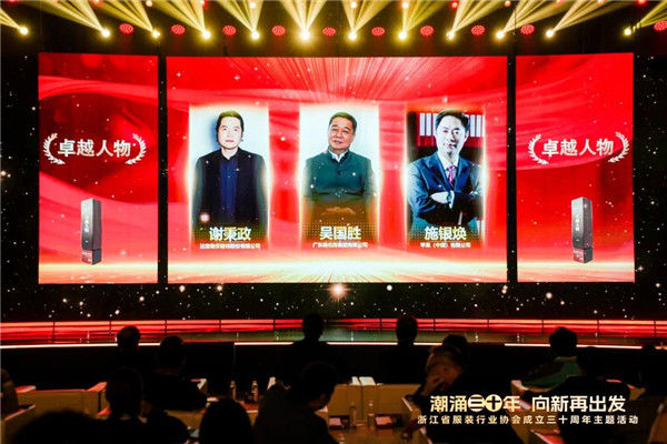為了向浙江服裝行業(yè)先驅(qū)致以崇高的敬意,活動現(xiàn)場特別采用人屏互動技術(shù),時空朗讀《激蕩》一文,表達對老一輩服裝人的深切敬意與懷念。同時,還對在浙江服裝產(chǎn)業(yè)發(fā)展中作出杰出貢獻的功勛人物進行了表彰,雅戈爾時尚股份有限公司董事長李如成、森馬集團有限公司董事長邱光和、原茉織華實業(yè)(集團)有限公司總經(jīng)理李勤夫、申洲國際集團控股有限公司董事長馬建榮等人獲此殊榮。此外,“創(chuàng)時代”人物、“銳世代”人物等獎項也逐一揭曉。獲獎代表萬事利集團有限公司董事長屠紅燕,中國時裝設(shè)計最高獎“金頂獎”獲得者、中國美術(shù)學院博士生導師吳海燕,寧波培羅成集團有限公司副總裁陸江洋在“風云對話”環(huán)節(jié)進行了精彩的分享與交流。