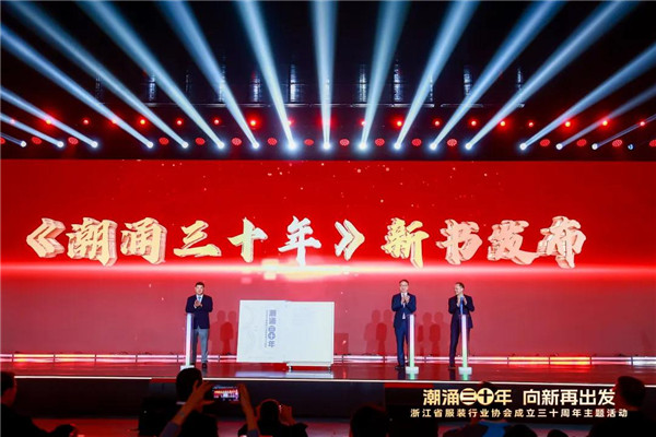 在浙江省服裝行業(yè)協(xié)會成立三十周年主題活動中,為了記錄浙江服裝行業(yè)三十年發(fā)展歷程,活動現(xiàn)場還特別舉行了《潮涌三十年》新書發(fā)布儀式,中國紡織工業(yè)聯(lián)合會會長孫瑞哲,長三角服裝聯(lián)盟主席、浙江省服裝行業(yè)協(xié)會第七屆會長馮德虎,中國紡織出版社有限公司董事長鄭偉良一同上臺發(fā)布。本書由浙江省服裝行業(yè)協(xié)會著、《中國服飾》雜志采編、中國紡織出版社有限公司出版,詳細記錄了浙江省服裝行業(yè)協(xié)會成立三十年來,浙江一代代服裝人如何“走遍千山萬水、說盡千言萬語、想盡千方百計、吃盡千辛萬苦”,實現(xiàn)浙江服裝產(chǎn)業(yè)由弱到強的華麗蛻變。而這份耀眼的成績單,離不開無數(shù)浙江服裝人的智慧、奉獻與熱愛。