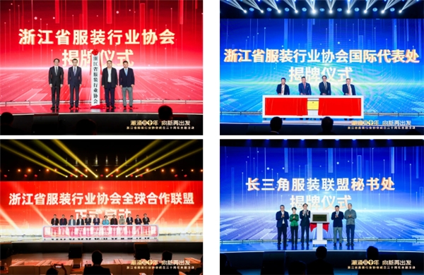 在全球化浪潮下,拓展全球視野、追求合作共贏,已然成為浙江服裝產(chǎn)業(yè)邁向高質(zhì)量發(fā)展的鮮明旗幟。在此背景下,活動現(xiàn)場迎來了多個里程碑時刻:浙江省服裝行業(yè)協(xié)會、浙江省服裝行業(yè)協(xié)會法國代表處、浙江省服裝行業(yè)協(xié)會意大利米蘭代表處、浙江省服裝行業(yè)協(xié)會意大利普拉托代表處揭牌儀式,以及全球合作聯(lián)盟的啟動儀式的舉行,標志著浙江服裝產(chǎn)業(yè)邁出了國際化布局的重要步伐。同時,長三角服裝聯(lián)盟秘書處與浙江省服裝行業(yè)協(xié)會秘書處落戶臨平揭牌儀式的舉行,更是強化了區(qū)域間的合作與交流,進一步促進了各方優(yōu)勢互補、共贏發(fā)展。