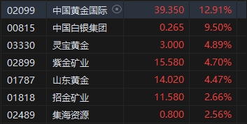 黃金股全天漲勢強(qiáng)勁,中國黃金國際漲近13%。高盛集團(tuán)表示,受各大央行購買和美國降息推動(dòng),黃金價(jià)格明年將上漲至創(chuàng)紀(jì)錄水平。高盛集團(tuán)將黃金列為2025年首選大宗商品交易之一,并表示金價(jià)可能在唐納德·特朗普擔(dān)任美國總統(tǒng)期間延續(xù)漲勢。包括Daan Struyven在內(nèi)的高盛分析師在報(bào)告中表示:“買入黃金?!狈治鰩熤厣?,到2025年12月金價(jià)將達(dá)到每盎司3000美元。