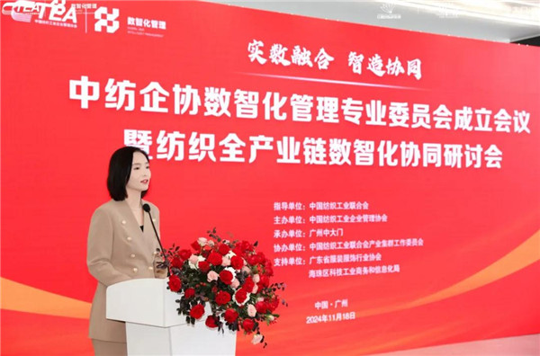 為充分發(fā)揮數(shù)字要素在提升產(chǎn)業(yè)鏈協(xié)作、中小企業(yè)效能方面的作用,推動新一代信息技術(shù)在紡織產(chǎn)業(yè)集群、園區(qū)、企業(yè)管理服務(wù)過程中的廣泛應(yīng)用,推廣紡織服裝產(chǎn)業(yè)鏈相關(guān)的智能制造、數(shù)智化營銷、信息化管理等多層次技術(shù)成果。2024年11月18日,中紡企協(xié)數(shù)智化管理專業(yè)委員會成立會議暨紡織全產(chǎn)業(yè)鏈數(shù)智化協(xié)同研討會在廣州召開。會上向全行業(yè)亮相中紡企協(xié)數(shù)智化管理專業(yè)委員會(以下簡稱“數(shù)智化管理專委會”)陣容,并舉行了“數(shù)智化管理提升行動進集群”發(fā)起儀式。