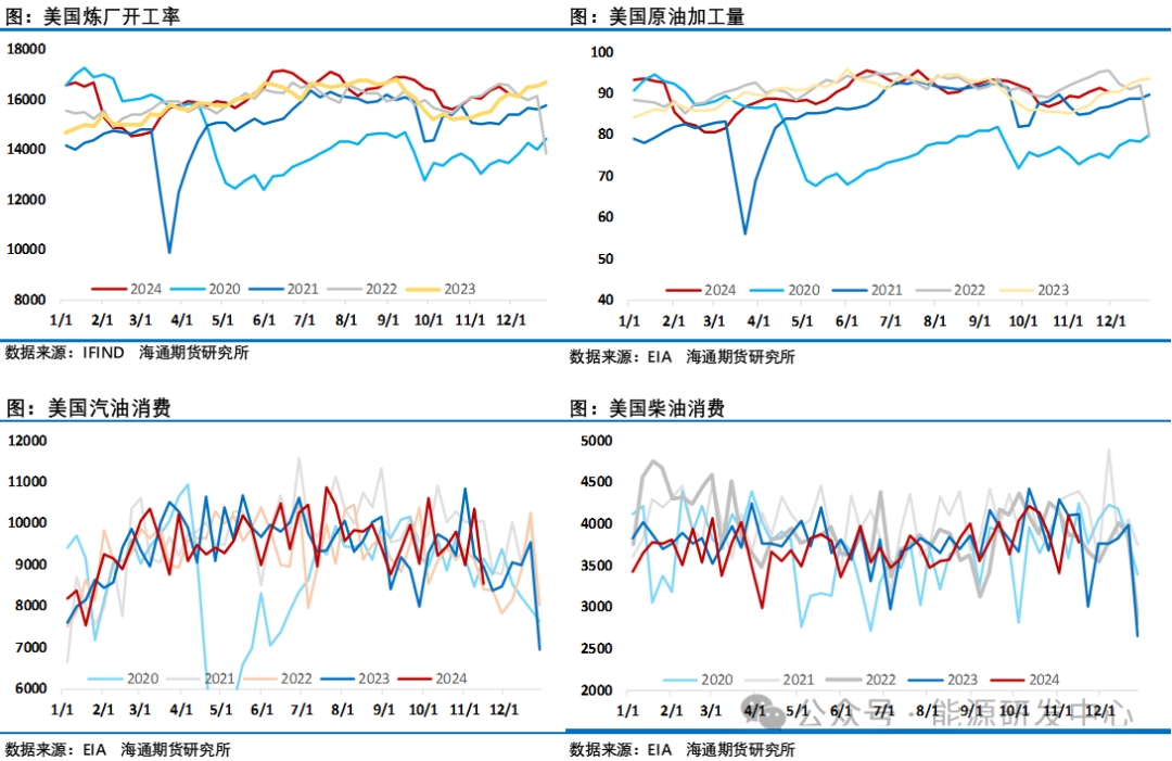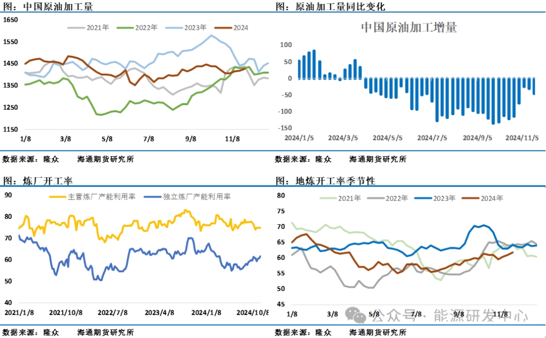 另一個(gè)比較重要的國家伊朗,在特朗普選擇美國參議員盧比奧擔(dān)任國務(wù)卿,市場很快意識(shí)到美國可能會(huì)重新加強(qiáng)對伊朗和委內(nèi)瑞拉的石油制裁。在特朗普的第一任期內(nèi),對伊朗做出制裁決定后,伊朗原油產(chǎn)量暴跌150萬桶/日,而在總統(tǒng)拜登任職期間,對伊朗制裁明顯有放松,這讓伊朗原油恢復(fù)了絕大部分因制裁而導(dǎo)致的產(chǎn)量損失,并恢復(fù)了大量出口,中國已成為其主要買家。而隨著特朗普重新當(dāng)選總統(tǒng),以及其提名盧比奧作為國務(wù)卿人選,加大對伊朗制裁迅速成為市場認(rèn)為的選擇,雖然近期伊朗方面表現(xiàn)積極主動(dòng)示好,但被制裁的風(fēng)險(xiǎn)仍然非常高,最新一期的歐佩克月報(bào)顯示伊朗10月原油產(chǎn)量出現(xiàn)回落,對中國出口量也有所減少,后續(xù)關(guān)注這一變化的持續(xù)性。