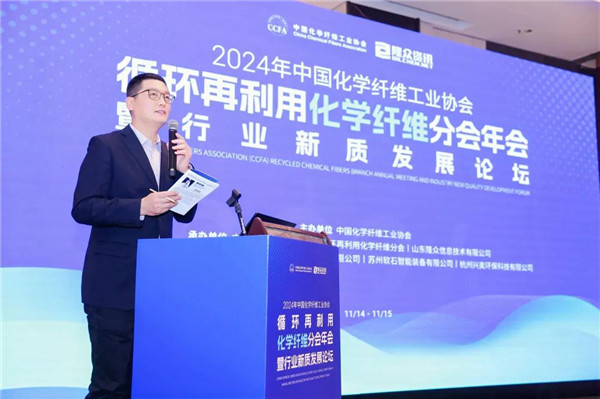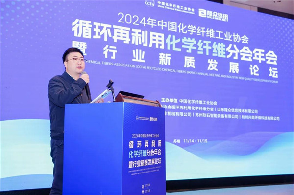 11月14-15日,“2024年中國化學纖維工業(yè)協(xié)會循環(huán)再利用化學纖維分會年會暨行業(yè)新質發(fā)展論壇”在江蘇省蘇州市召開,本次會議由中國化學纖維工業(yè)協(xié)會循環(huán)再利用化學纖維分會與山東隆眾信息技術有限公司聯合舉辦。中國化學纖維工業(yè)協(xié)會會長陳新偉、國家發(fā)展改革委產業(yè)協(xié)調司原巡視員賀燕麗, 以及來自業(yè)內領導、專家、生產企業(yè)、科研人員及行業(yè)上下游企業(yè)代表同聚一堂,共商循環(huán)再利用化學纖維行業(yè)發(fā)展大計。會議由東華大學材料科學與工程學院研究員吉鵬與中國化學纖維工業(yè)協(xié)會副總工程師李德利共同主持。