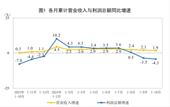 10月份,規(guī)模以上工業(yè)企業(yè)利潤同比下降10.0%。