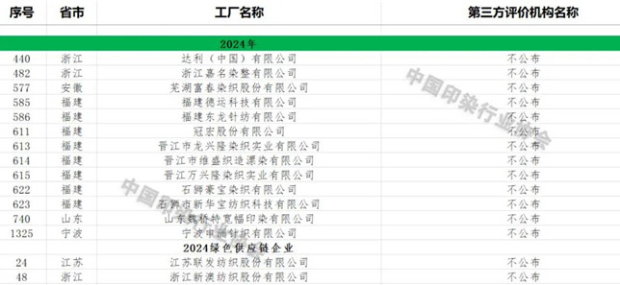 值得關(guān)注的是,此次公示的名單里涉及到了多家印染企業(yè)。詳見下表。