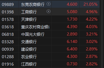 內(nèi)銀股普遍上漲,工商銀行漲超近5%。中信證券(21.4, 0.00, 0.00%)研報認(rèn)為,12月重要會議結(jié)束后,市場對于政策的博弈告一段落,人民幣大類資產(chǎn)配置框架下思考,銀行股仍將是確定性強(qiáng)的方向,年底和年初將步入保險開門紅增配季,股息高、波動低、經(jīng)營穩(wěn)的銀行品種預(yù)計(jì)仍是險資增配方向。
