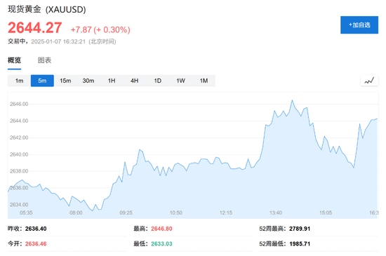 2024年,在美國(guó)貨幣政策寬松、避險(xiǎn)需求上升以及全球央行持續(xù)買入的推動(dòng)下,金價(jià)曾創(chuàng)下歷史新高。截止發(fā)稿,現(xiàn)貨黃金價(jià)格為2644.27美元/盎司。
