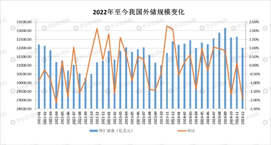 截至2024年12月末,我國(guó)外匯儲(chǔ)備規(guī)模為32023.6億美元,較11月末下降635億美元,降幅為1.94%。