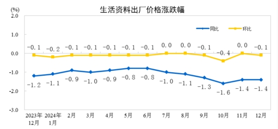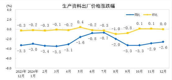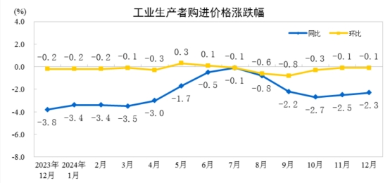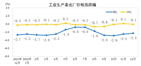 2024年12月份,全國工業(yè)生產者出廠價格和購進價格同比均下降2.3%,降幅比上月均收窄0.2個百分點;環(huán)比均下降0.1%。2024年全年,工業(yè)生產者出廠價格和購進價格均下降2.2%,降幅比上年分別收窄0.8、1.4個百分點。