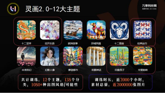該模型基于超70萬(wàn)件高精度花型數(shù)據(jù)庫(kù),可自動(dòng)生成1081種風(fēng)格組合,實(shí)現(xiàn)“10秒內(nèi)設(shè)計(jì)一條專屬絲巾”。用戶只需輸入關(guān)鍵詞或上傳靈感圖片,AI即可生成獨(dú)一無(wú)二的花型方案。其擁有的10的27次方超級(jí)算力,可以為全球80億人每人設(shè)計(jì)10萬(wàn)條不重樣絲巾。