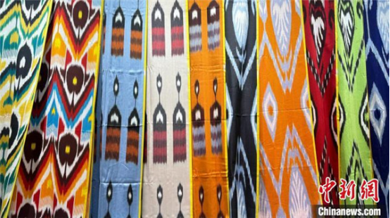 艾德萊斯綢是維吾爾族婦女最喜愛的服裝面料之一,被譽為“布谷鳥翅膀的花”,寓意能給人們帶來春天的氣息。它采用傳統(tǒng)扎經染色工藝,所有制作工序均由手工完成,具有極高的藝術價值。2008年,艾德萊斯綢織染技藝被列入第二批國家級非物質文化遺產名錄。
