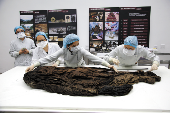 從浙江杭州西子湖畔步行進(jìn)入玉皇山路,大約1公里后,中國(guó)絲綢博物館在叢林掩映中出現(xiàn)。走進(jìn)館里,一團(tuán)小小的絲線格外引人注目?!斑@是考古工作者于2005年對(duì)錢山漾遺址進(jìn)行第三次發(fā)掘時(shí)出土的絲線。這團(tuán)長(zhǎng)約7厘米的絲線是迄今為止在長(zhǎng)江流域發(fā)現(xiàn)的最早的絲綢產(chǎn)品,說(shuō)明距今4400年至4200年的長(zhǎng)江流域已有養(yǎng)蠶、繅絲、織綢技術(shù)?!苯z路文化研究傳承團(tuán)隊(duì)相關(guān)負(fù)責(zé)人表示,在考古搶救中,團(tuán)隊(duì)要深入現(xiàn)場(chǎng),克服常人難以克服的心理關(guān),搶救修復(fù)重要文物。
