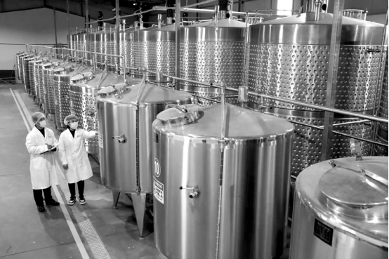 工人在葚天酒業(yè)車間測試酒精度數(shù)