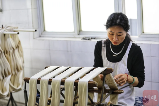 蠶桑是寧南的第一支柱產(chǎn)業(yè),寧南縣南絲路集團(tuán)有限公司是引領(lǐng)寧南蠶桑產(chǎn)業(yè)發(fā)展的龍頭企業(yè)。在寧南銀鴻絲業(yè)有限公司的廠房,工人們正在生產(chǎn)線上熟練地煮繭、取絲、繅絲。記者來到全國勞模示范車臺,公司工會副主席晏魯作正在這里進(jìn)行新員工培訓(xùn)和技術(shù)指導(dǎo),其獨創(chuàng)的“晏式手法”極大地提高了繅絲生產(chǎn)效率,在她的指導(dǎo)下,新工人迅速掌握技術(shù)要點,通過示范車臺的帶動,公司整體生產(chǎn)效率提升30%以上。銀鴻絲業(yè)副總經(jīng)理劉兢介紹,2024年,公司銷售收入首次突破6億元大關(guān),今年還將爭取在外貿(mào)出口上再突破。