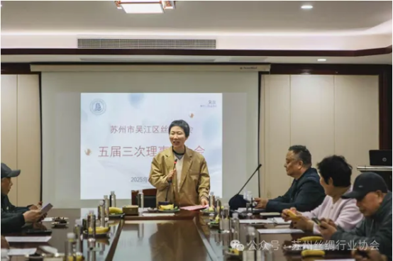 本次會(huì)議共有六個(gè)議程。協(xié)會(huì)會(huì)長(zhǎng)、吳江赴東紡織集團(tuán)有限公司董事長(zhǎng)董東立代表第五屆理事會(huì)作2024年協(xié)會(huì)工作報(bào)告。協(xié)會(huì)監(jiān)事、蘇州市吳江區(qū)蠶桑園藝站站長(zhǎng)顧理流作2024年協(xié)會(huì)財(cái)務(wù)工作報(bào)告。經(jīng)過大家審議,大會(huì)以舉手表決的方式通過了上述兩個(gè)報(bào)告。