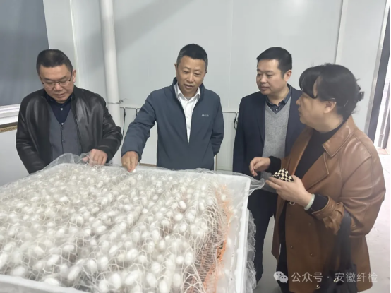 為全面掌握安徽省桑蠶產(chǎn)業(yè)轉(zhuǎn)型升級情況,推動產(chǎn)業(yè)高質(zhì)量發(fā)展,3月28日,安徽省纖檢局一行赴潛山市槎水鎮(zhèn)中畈村桑蠶產(chǎn)業(yè)園開展調(diào)研,并就桑蠶產(chǎn)業(yè)的創(chuàng)新發(fā)展模式與企業(yè)進(jìn)行深入交流。