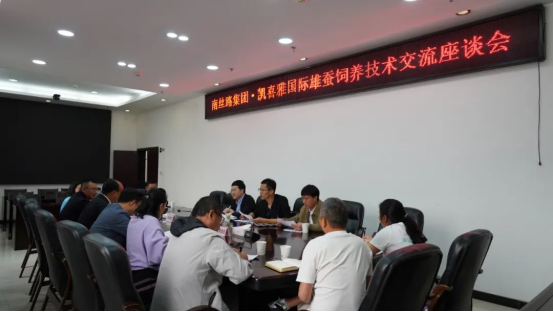 座談會(huì)上,南絲路集團(tuán)對(duì)凱喜雅國際趙樹超專家一行的到來表示熱烈歡迎,本次座談會(huì)旨在加強(qiáng)企業(yè)間技術(shù)合作,深化科研成果轉(zhuǎn)化,促進(jìn)蠶桑產(chǎn)業(yè)提質(zhì)增效。會(huì)上,雙方就“秋·華×平30”(蠶種)的遺傳特性、飼養(yǎng)優(yōu)勢(shì)、桑葉搭配等核心內(nèi)容開展全面交流。雙方一致認(rèn)為,蠶種是蠶桑產(chǎn)業(yè)鏈的源頭,加強(qiáng)優(yōu)質(zhì)蠶種的技術(shù)交流和合作推廣,對(duì)提升區(qū)域蠶桑綜合效益具有重要意義。