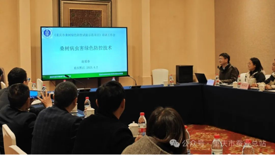 為持續(xù)推進(jìn)我市桑樹綠色防控示范區(qū)建設(shè),提升桑樹病蟲害識(shí)別、測(cè)報(bào)、防控水平,推動(dòng)蠶桑產(chǎn)業(yè)綠色發(fā)展,4月2-3日,市桑樹綠色防控試驗(yàn)示范項(xiàng)目組在黔江區(qū)召開了2025年度培訓(xùn)工作會(huì)。西南大學(xué)、重慶三峽農(nóng)業(yè)科學(xué)院、黔江區(qū)蠶業(yè)管理總站、涪陵區(qū)經(jīng)濟(jì)作物發(fā)展中心四個(gè)測(cè)報(bào)點(diǎn)及市蠶業(yè)總站項(xiàng)目組成員20余人參會(huì)。市商務(wù)委四級(jí)調(diào)研員袁徐宏出席會(huì)議并講話。會(huì)議由市蠶業(yè)總站副站長(zhǎng)余華獻(xiàn)高級(jí)農(nóng)藝師主持。