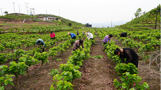 4月8日,在宜賓高縣來復(fù)鎮(zhèn)響石村標準化桑園基地,蠶農(nóng)楊元友等人在農(nóng)技專家指導下管理桑樹,為桑葉豐產(chǎn)、蠶繭豐收打牢基礎(chǔ)。