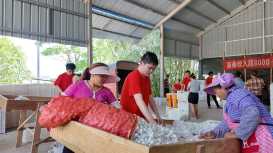 這份底氣源于清平鄉(xiāng)對蠶桑產(chǎn)業(yè)的深耕細(xì)作。近年來,清平鄉(xiāng)緊扣鄉(xiāng)村振興戰(zhàn)略,錨定“一縣一業(yè)”蠶桑示范縣建設(shè)目標(biāo),創(chuàng)新推行“黨支部+基地+農(nóng)戶”模式,村集體建設(shè)蠶棚、農(nóng)戶精細(xì)管理,實(shí)現(xiàn)村集體經(jīng)濟(jì)與群眾收入““雙贏雙豐收”。通過建立“選、育、獎(jiǎng)”機(jī)制,培育示范戶、獎(jiǎng)勵(lì)高產(chǎn)戶,并配套技術(shù)培訓(xùn)提升桑園產(chǎn)量;同時(shí)引進(jìn)優(yōu)良蠶種,推廣標(biāo)準(zhǔn)化養(yǎng)殖技術(shù),推動(dòng)產(chǎn)業(yè)向規(guī)模化邁進(jìn)。并同時(shí)延伸產(chǎn)業(yè)鏈條,實(shí)現(xiàn)桑蠶產(chǎn)業(yè)效益倍增,產(chǎn)業(yè)附加值不斷提升。