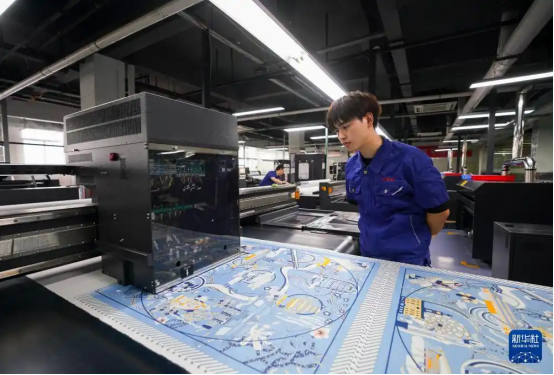 4月24日,工人在萬事利雙面數(shù)碼印花工廠作業(yè)