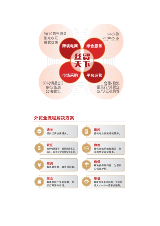 “絲貿(mào)天下”外綜服務(wù)平臺通過大數(shù)據(jù)分析、機器學習、自然語言處理等技術(shù),實現(xiàn)采購全流程的自動化和智能化,為廣大中小微生產(chǎn)企業(yè)提供標準化、規(guī)范化、集約化的物流、通關(guān)、金融、收匯、信保、退稅等所有進出口環(huán)節(jié)的外貿(mào)綜合服務(wù),確保全天候在線和快速響應(yīng),為參展的平臺客戶提供快捷通道,讓客戶展會下單、平臺出口無縫銜接,推動人工智能賦能產(chǎn)業(yè)鏈供應(yīng)鏈協(xié)同發(fā)展。目前,“絲貿(mào)天下”外綜服務(wù)平臺與粵港澳大灣區(qū)近千家生產(chǎn)企業(yè)簽訂了外綜服務(wù)協(xié)議。