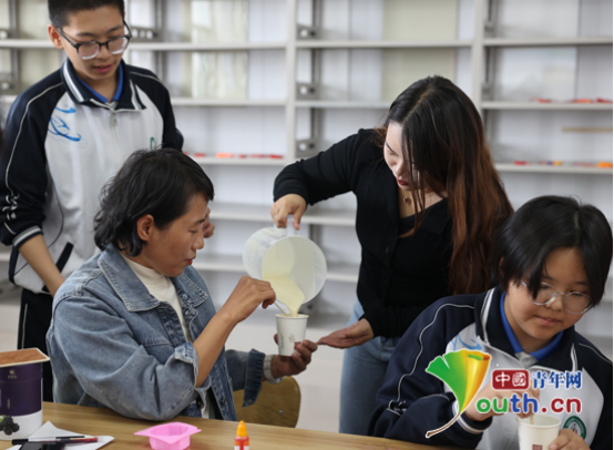 研支團(tuán)成員與金山實驗學(xué)校師生共同制作蠶絲手工皂